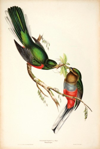 | Narina Trogon Apaloderma narina -John and Elizabeth Gould Print |